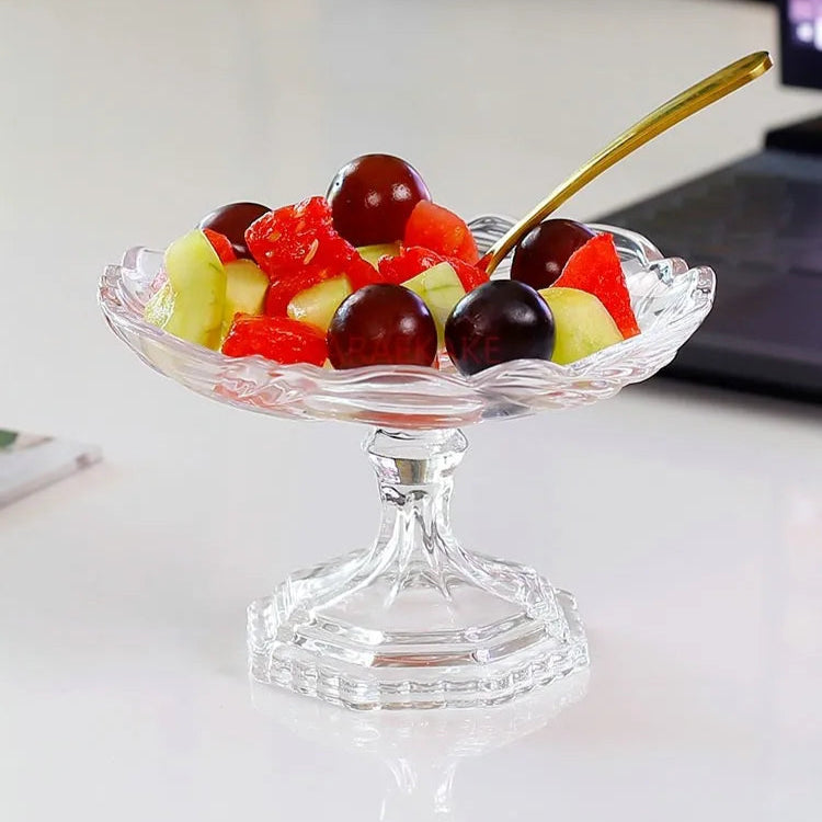 Eleve a sofisticação da sua mesa com o nosso Prato de Cristal com Base para Frutas e Sobremesas, ideal para servir frutas e sobremesas com um toque de classe. Este prato é uma peça central deslumbrante que combina beleza e funcionalidade, perfeito para ocasiões especiais ou para adicionar um toque de luxo ao seu dia a dia.