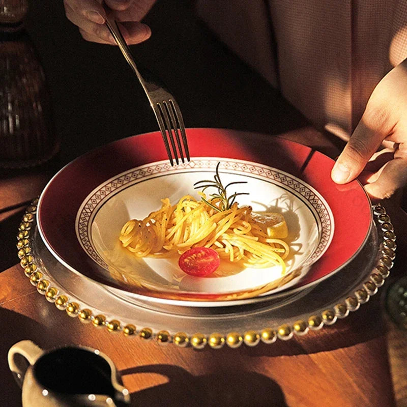 Eleve a experiência gastronômica com nossos Pratos Cerâmicos de Luxo, perfeitos para quem busca requinte e exclusividade. Com um design retrô e sofisticado, estes pratos são ideais para servir pratos de massas com um toque de classe.