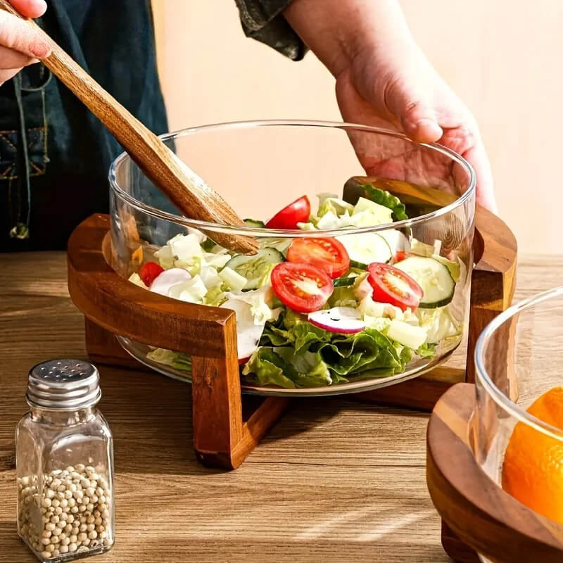 Saladeira com Base em Madeira une design refinado e praticidade, oferecendo uma peça elegante para compor sua mesa. A base em madeira proporciona estabilidade e um charme natural, valorizando a apresentação dos seus pratos com sofisticação.