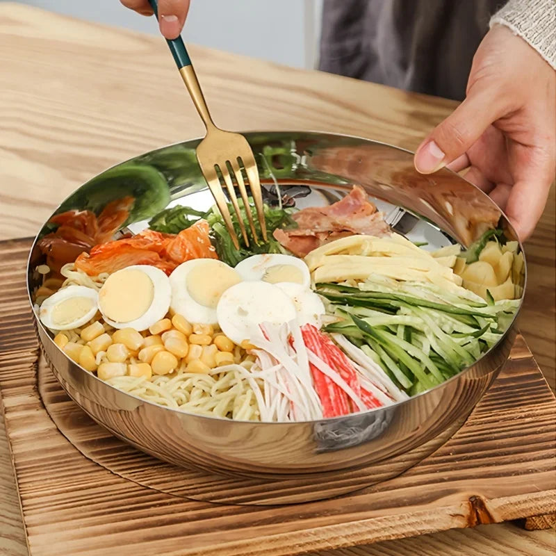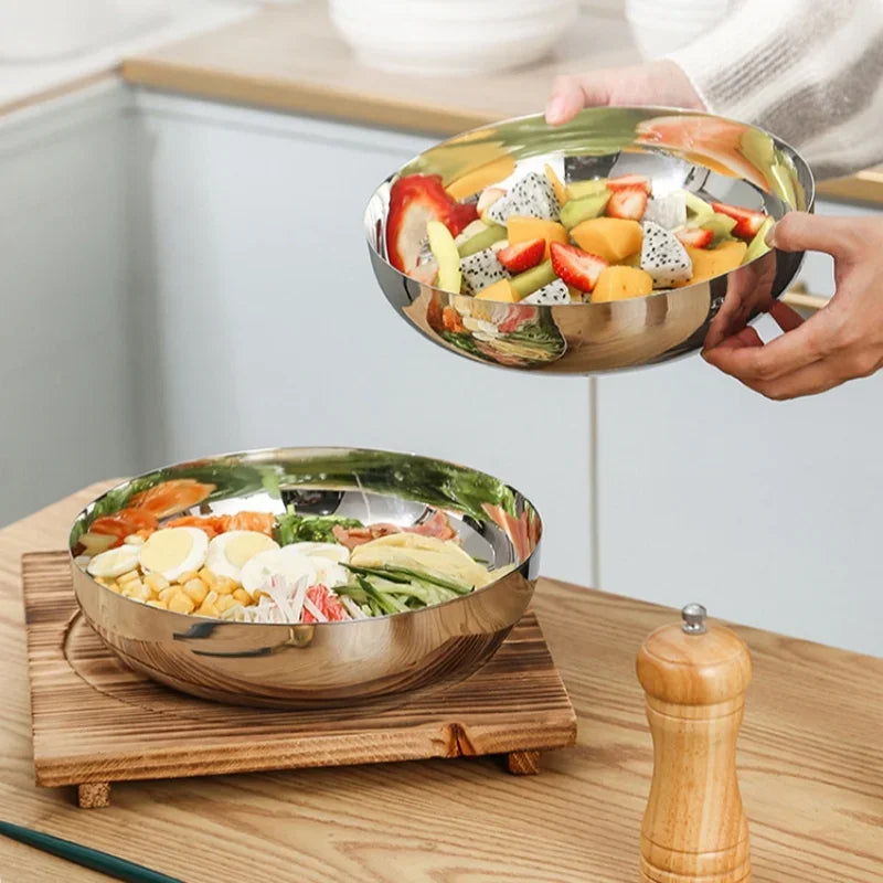 Saladeira Prata em Aço Inox combina elegância e durabilidade, ideal para servir suas saladas com estilo. Seu acabamento em aço inox garante resistência e fácil limpeza, enquanto o design sofisticado valoriza qualquer ocasião.