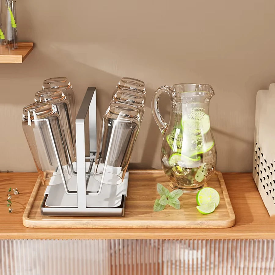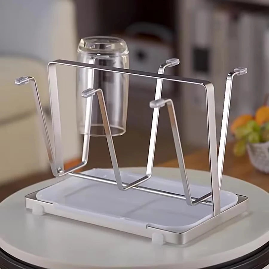 Suporte para Copos em Aço Inoxidável com Bandeja de Drenagem
