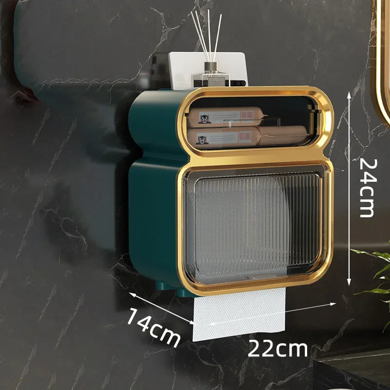 Suporte de Parede para Papel Higiênico, com uma gaveta integrada, este suporte oferece espaço adicional para armazenar itens essenciais.