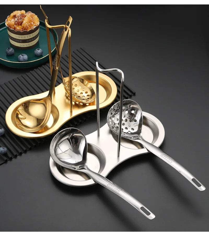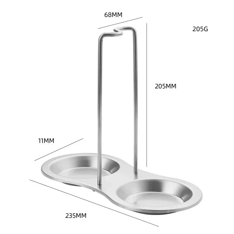 Suporte Descanso para Concha e Escumadeira, feito em aço inoxidável resistente, ele é ideal para apoiar utensílios de cozinha, evitando sujeira e deixando suas mãos livres para preparar suas deliciosas receitas.