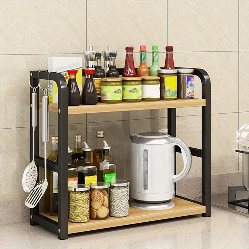 Economia de Espaço: Duas prateleiras espaçosas para armazenar temperos, garrafas e utensílios.