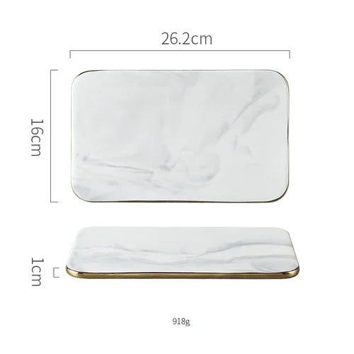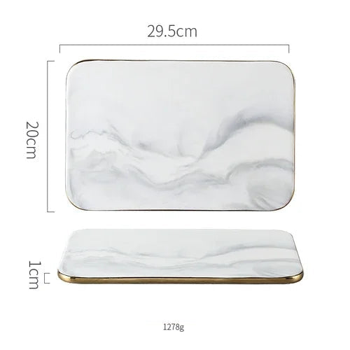Tábua Decorativa Luxuosa em Cerâmica Mármore com Borda Dourada