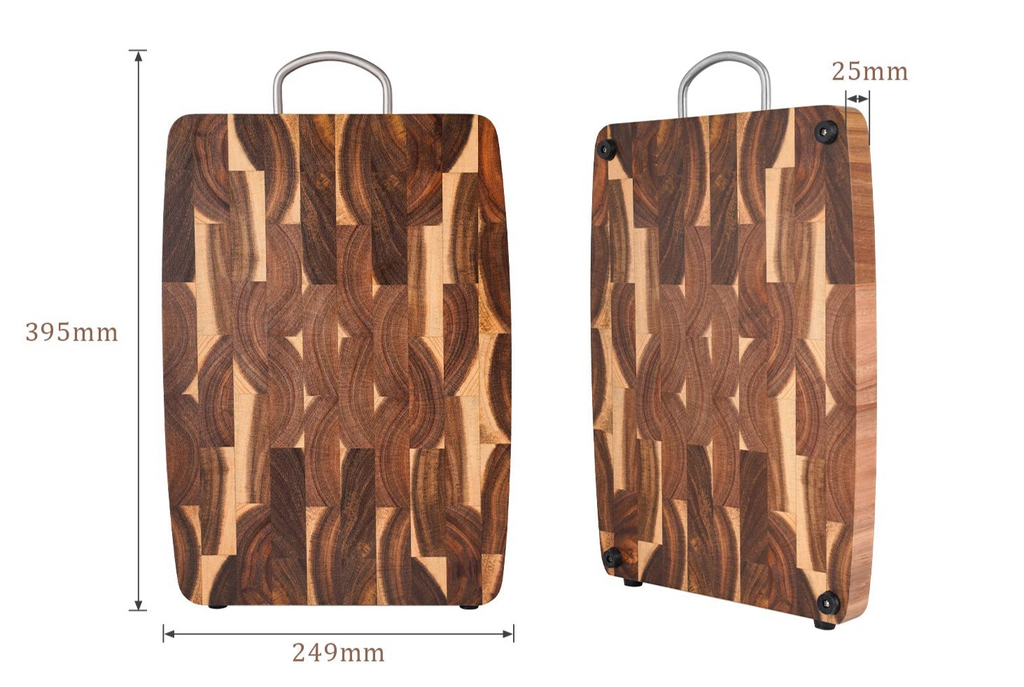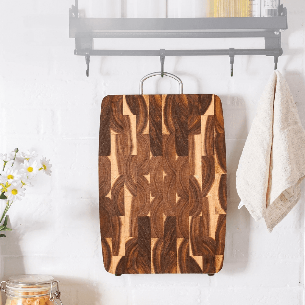 Tábua de Corte de Acácia Luxuosa com Alça de Aço Inox