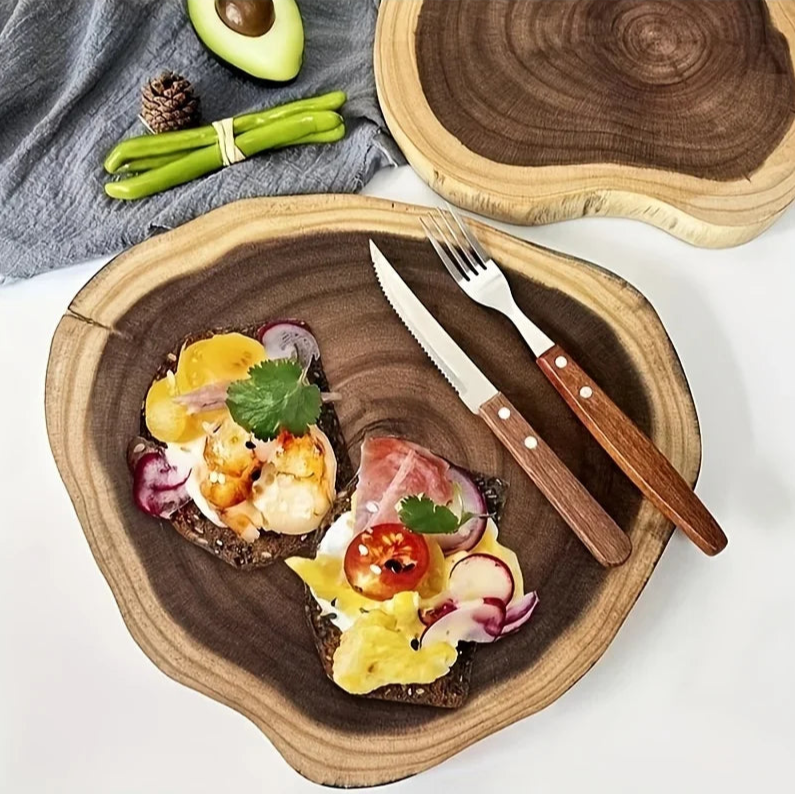 Tábua de Corte em Madeira Acácia Australiana oferece uma combinação perfeita de resistência e beleza natural. Com acabamento refinado, proporciona uma superfície durável que preserva o fio das facas, elevando a experiência culinária com um toque de sofisticação e elegância em sua cozinha.