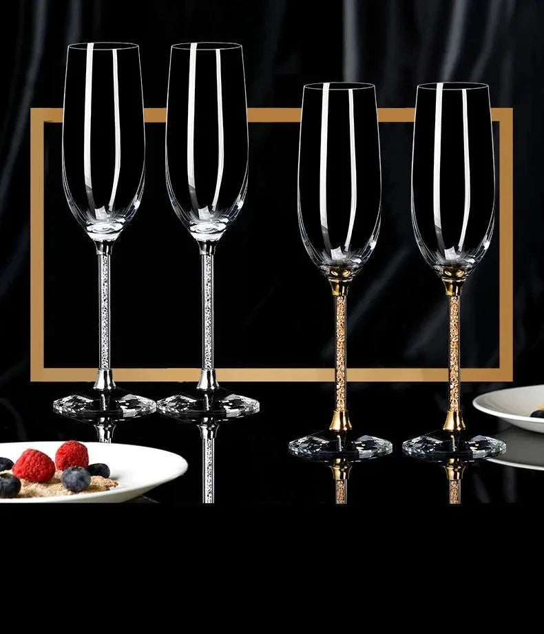 Taças Diamond em Cristal, são o complemento perfeito para suas ocasiões especiais, feitas em cristal de alta qualidade, essas 2 peças adicionam elegância e sofisticação à sua mesa.