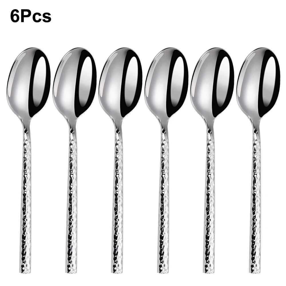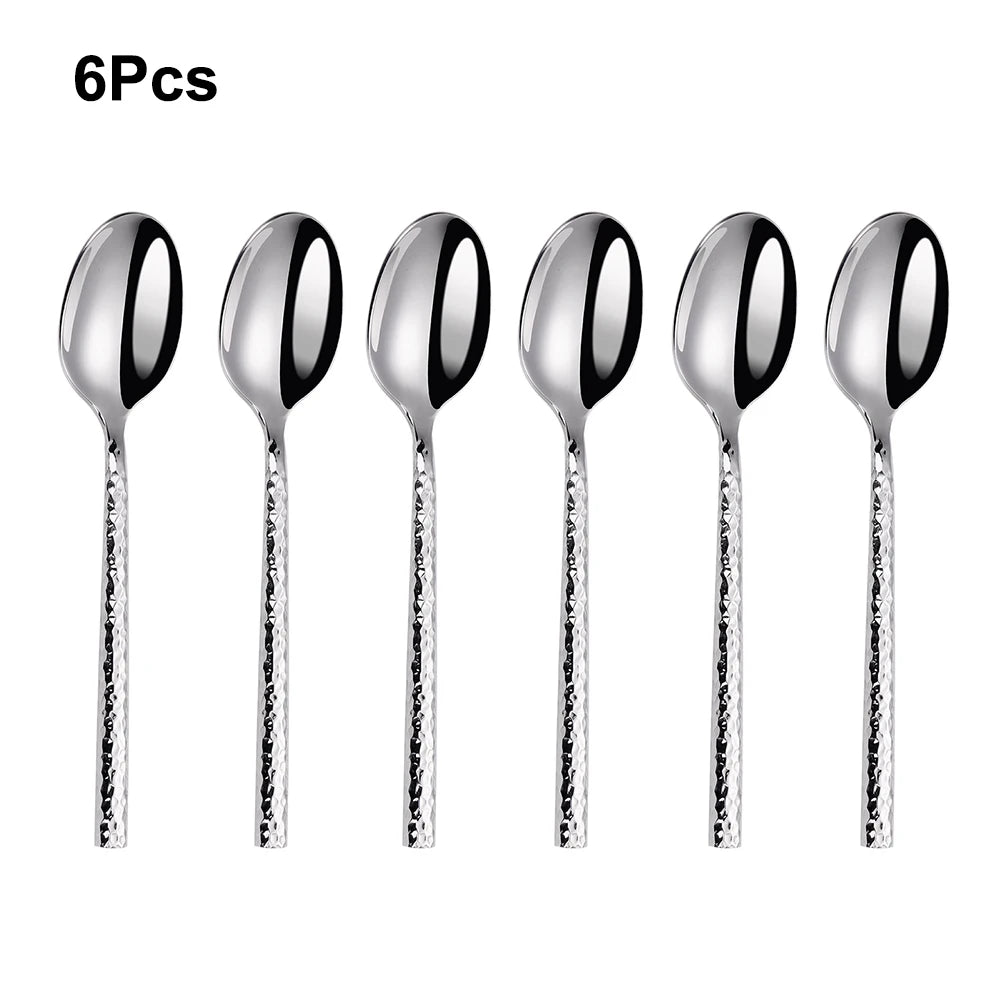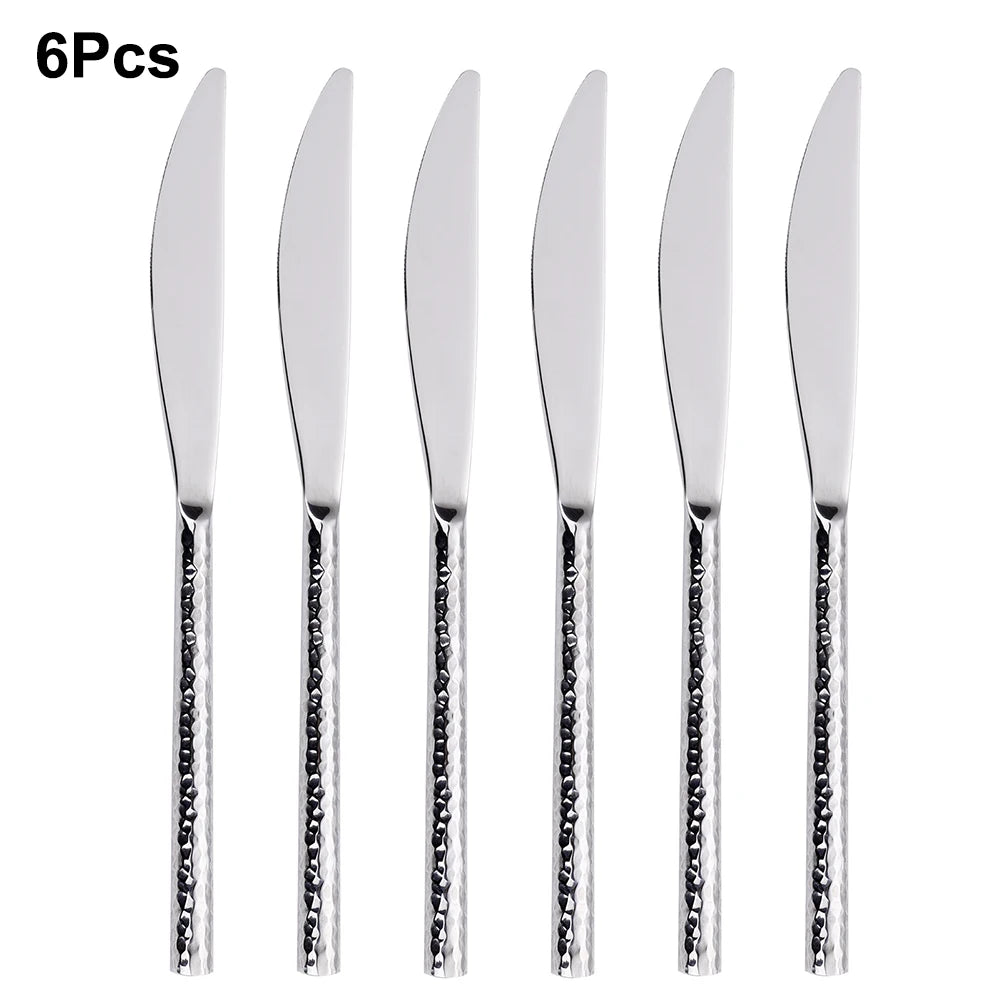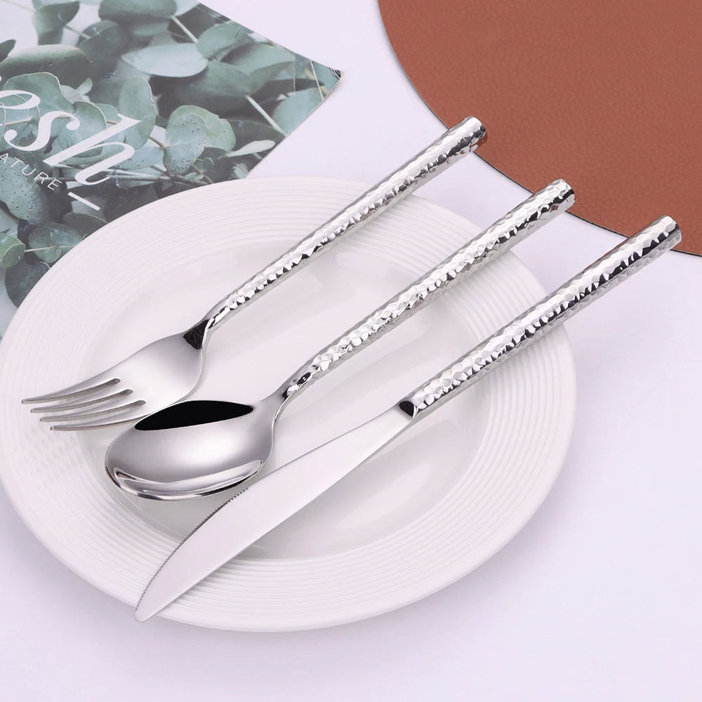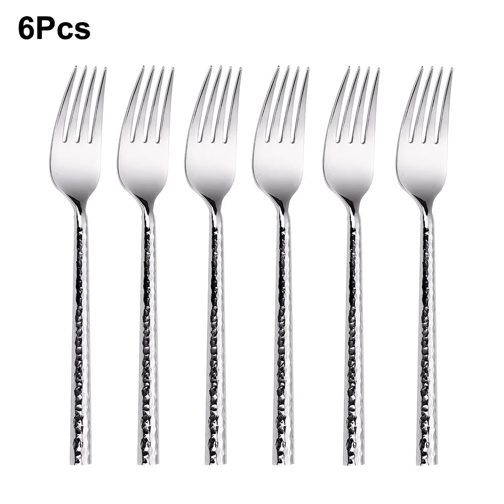 Conjunto de 6 Talheres em Inox com acabamento Prata Martelado une design sofisticado e alta durabilidade. Cada peça reflete um estilo refinado, ideal para compor uma mesa elegante em ocasiões especiais ou no dia a dia, garantindo praticidade e beleza em cada refeição.