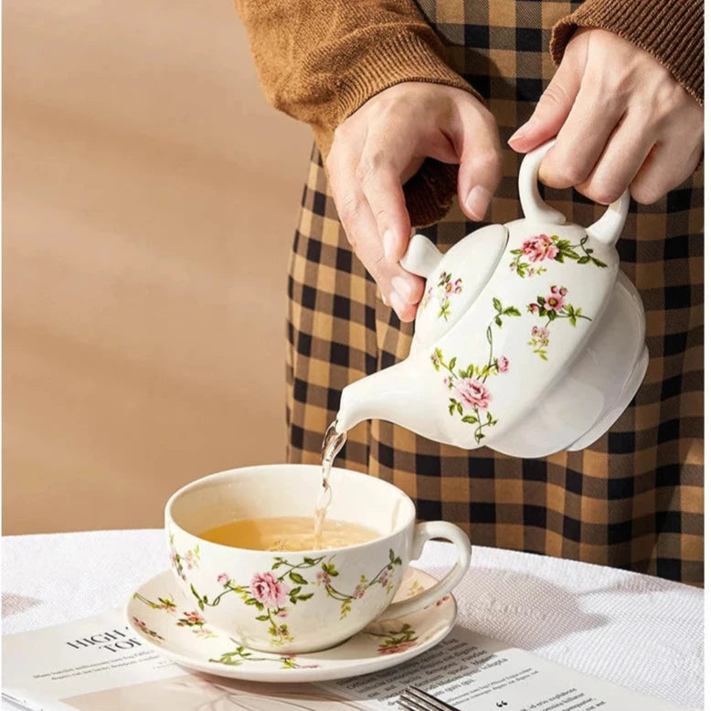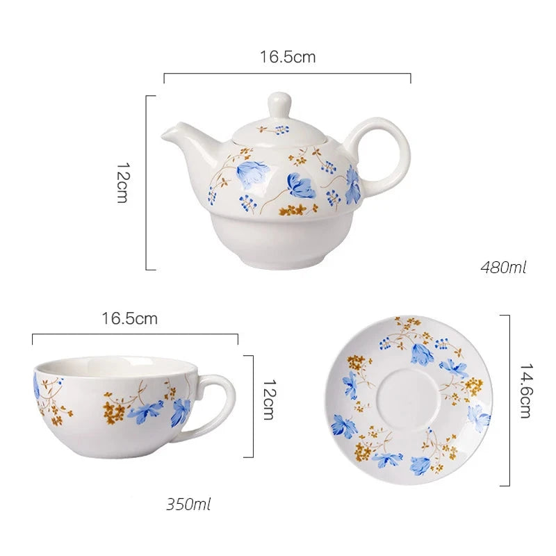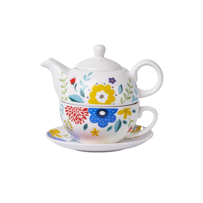 Tea For One Pintado a Mão em Porcelana, desfrute de um momento único com este conjunto que inclui um bule com tampa, uma xícara e um pires. Pintado à mão, cada peça é uma obra de arte que traz elegância e sofisticação para o seu dia a dia.
