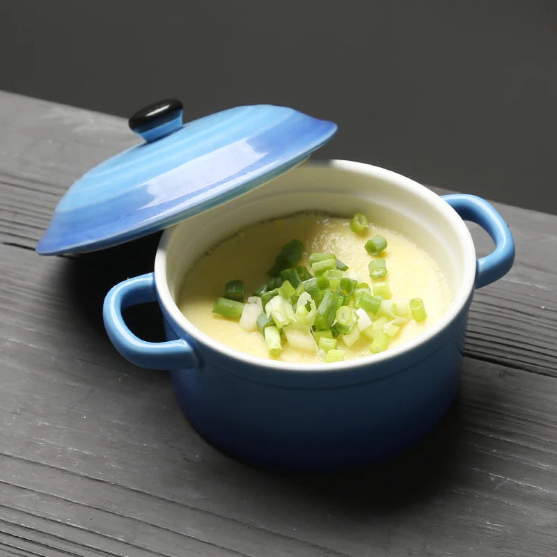 Tigela Azul com Alças e Tampa Porcelana - 300ml