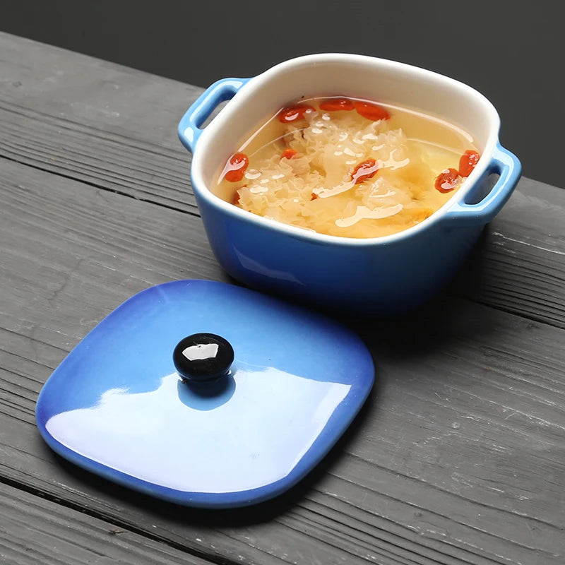Descubra a sofisticação e funcionalidade da nossa Tigela Azul com Alças e Tampa Porcelana, ideal para quem aprecia utensílios de cozinha de alta qualidade. Com um design elegante e prático, esta tigela é perfeita para servir sopas, cremes e muito mais, adicionando um toque de classe à sua mesa.