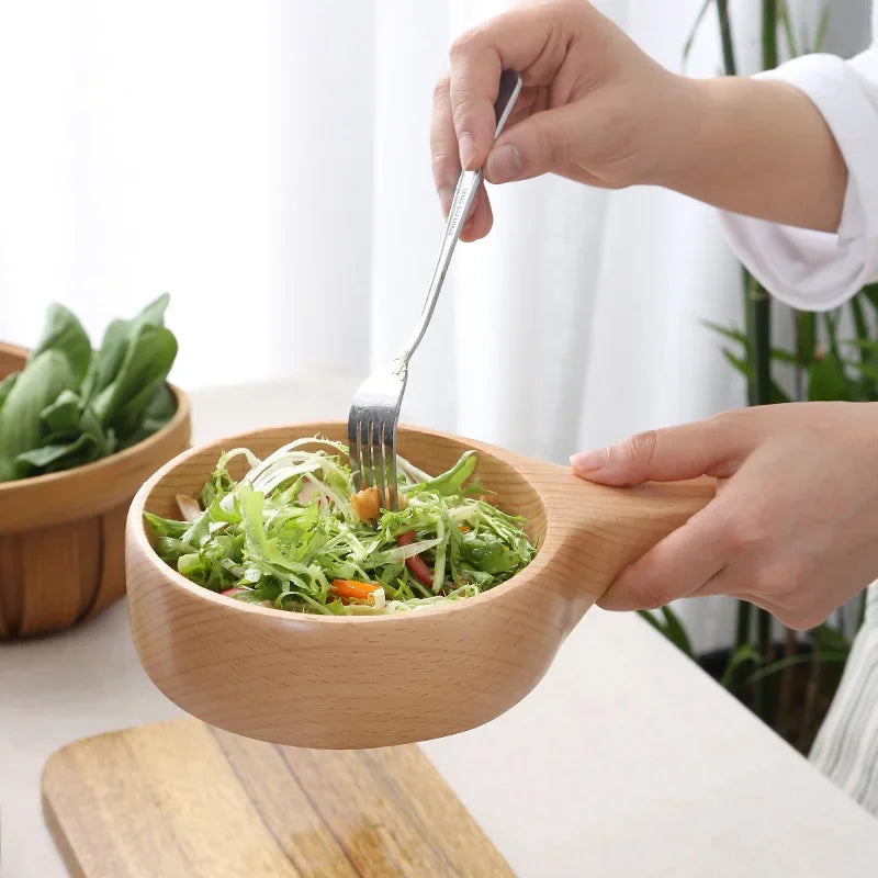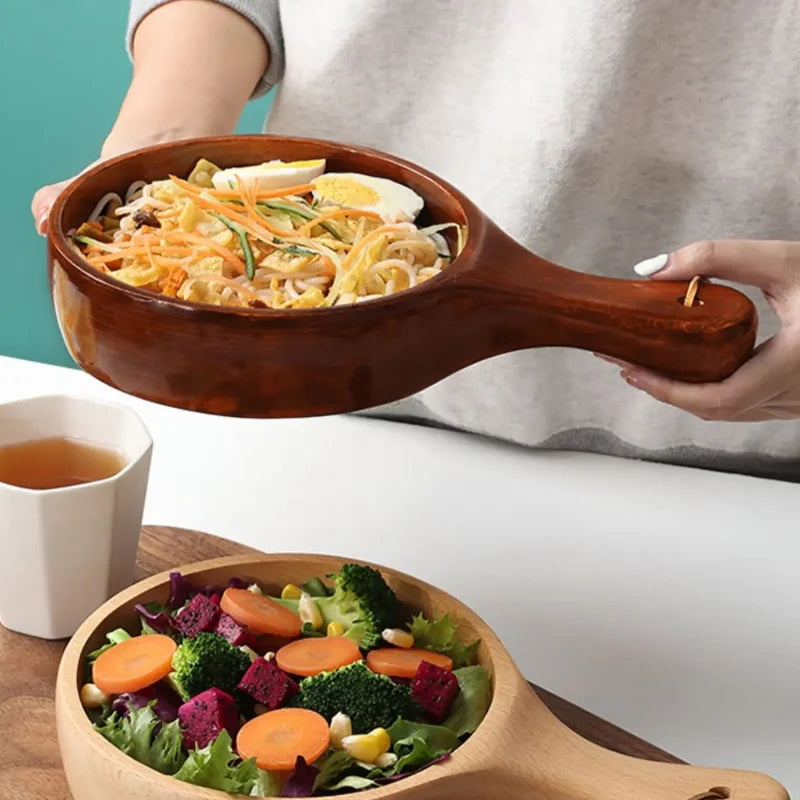 Tigela de Madeira com Cabo é uma peça refinada que alia design elegante e funcionalidade. Ideal para servir saladas com charme, seu cabo facilita o manuseio, enquanto a textura natural da madeira adiciona um toque de sofisticação à sua mesa.