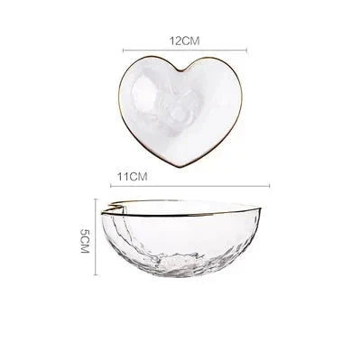Tigela Formato Coração de Vidro, confeccionada em vidro transparente de alta qualidade e ideal para servir frutas e saladas, ela adiciona um toque de elegância e beleza à sua mesa.