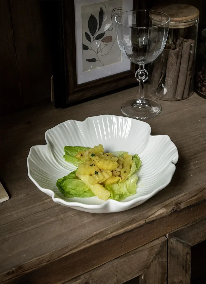 Tigela em Cerâmica, com Formato de Flor em Relevo, destaca-se pelo design elegante e acabamento sofisticado. Ideal para valorizar a apresentação de suas refeições, combina beleza e funcionalidade, trazendo um toque de requinte à sua mesa.