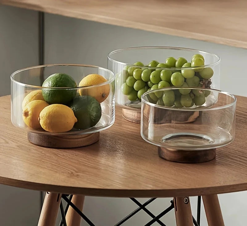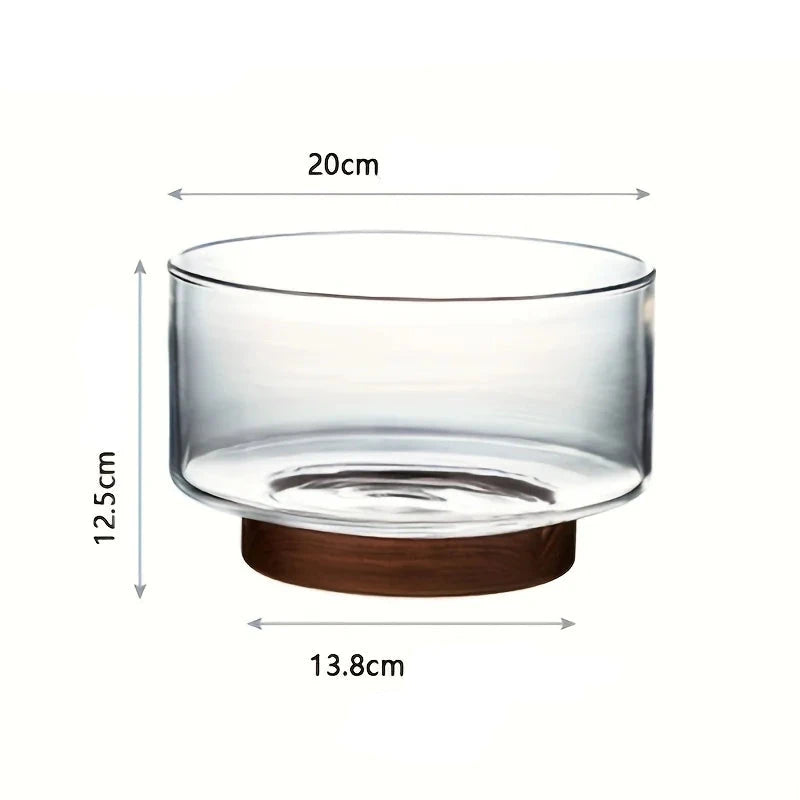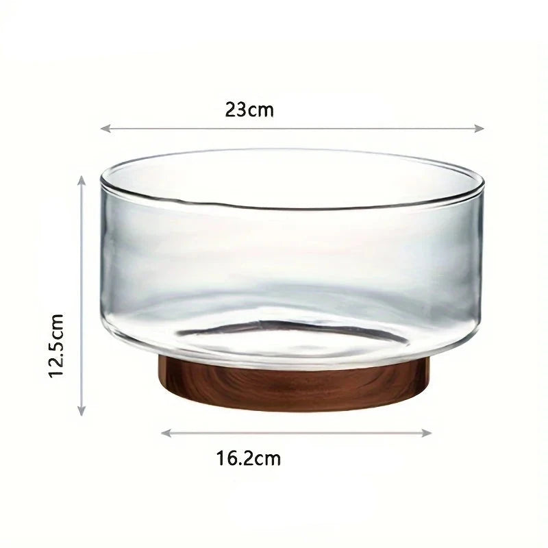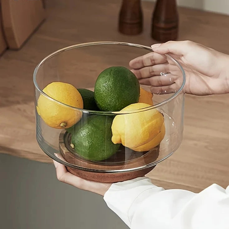 Esta tigela combina a transparência elegante do vidro com a textura natural da madeira, oferecendo um design sofisticado para servir frutas e saladas. Além de valorizar a apresentação dos alimentos, seu material resistente garante durabilidade e facilidade na limpeza.