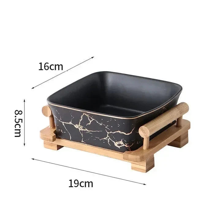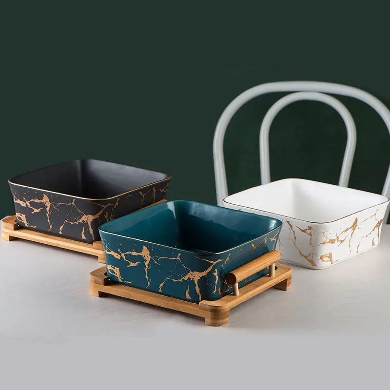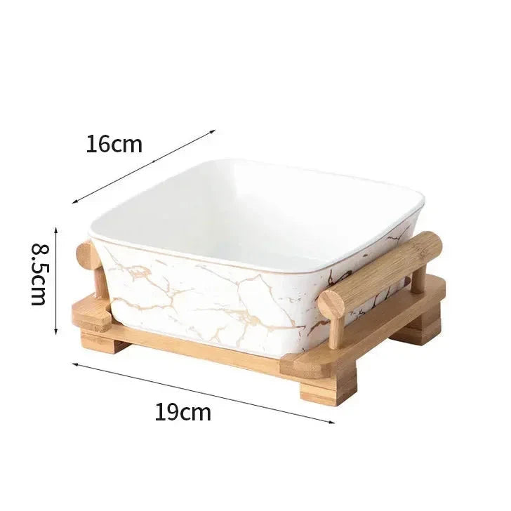 Tigela para Salada Marmorizada em Cerâmica com base em madeira combina elegância e funcionalidade. Seu design sofisticado realça qualquer mesa, enquanto a base em madeira oferece estabilidade e um toque natural. Ideal para servir saladas com estilo, é uma peça que une beleza e praticidade em suas refeições.