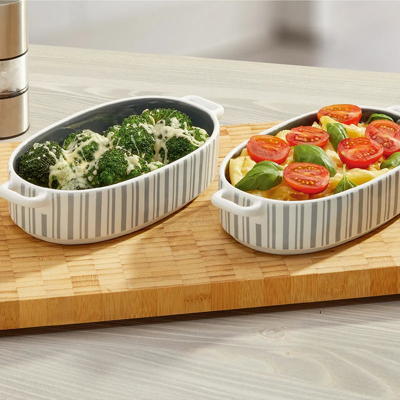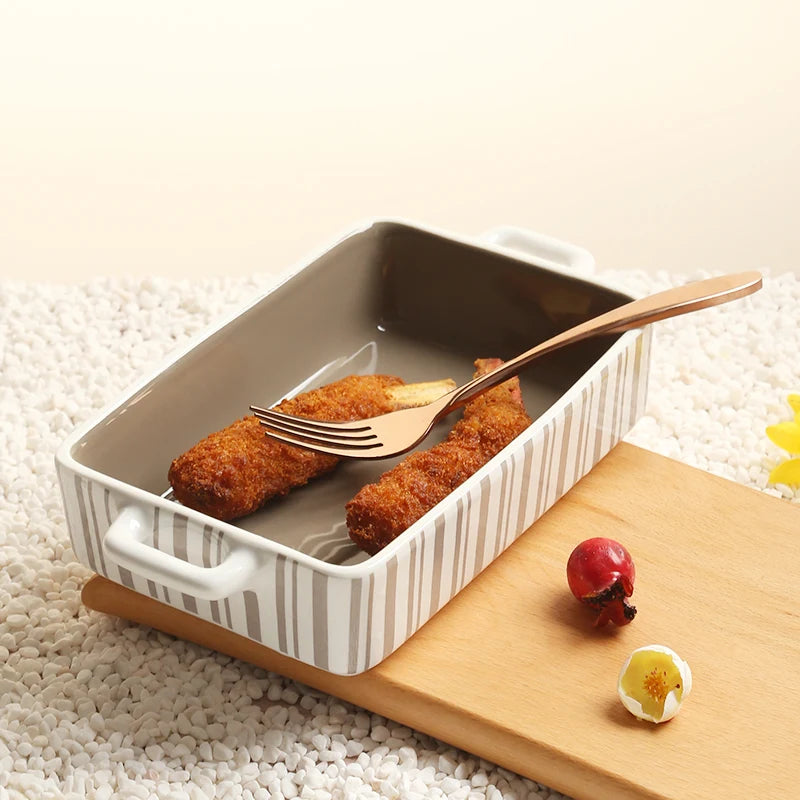Travessa Listrada em Cerâmica é a escolha perfeita para quem busca unir elegância e praticidade na hora de servir. Com seu design listrado refinado, ela valoriza a apresentação dos pratos, enquanto a cerâmica oferece resistência e facilidade de limpeza.
