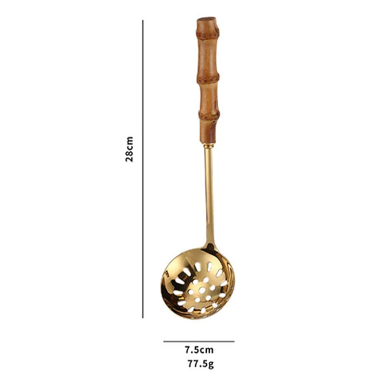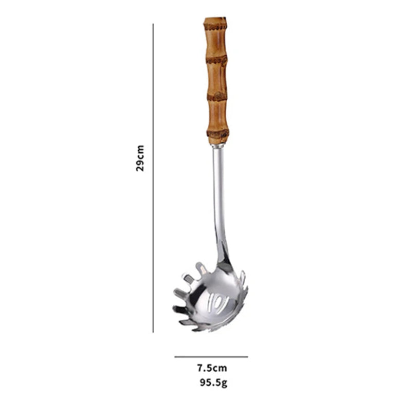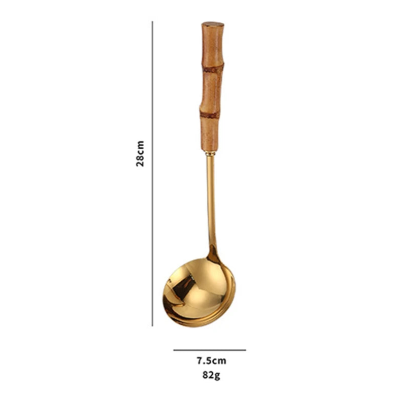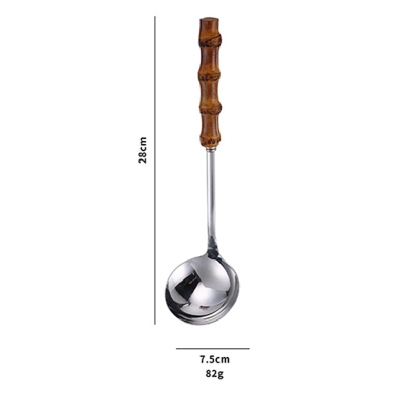 Design Exótico: O cabo de bambu natural oferece um toque de elegância e exclusividade, complementando qualquer decoração de mesa.