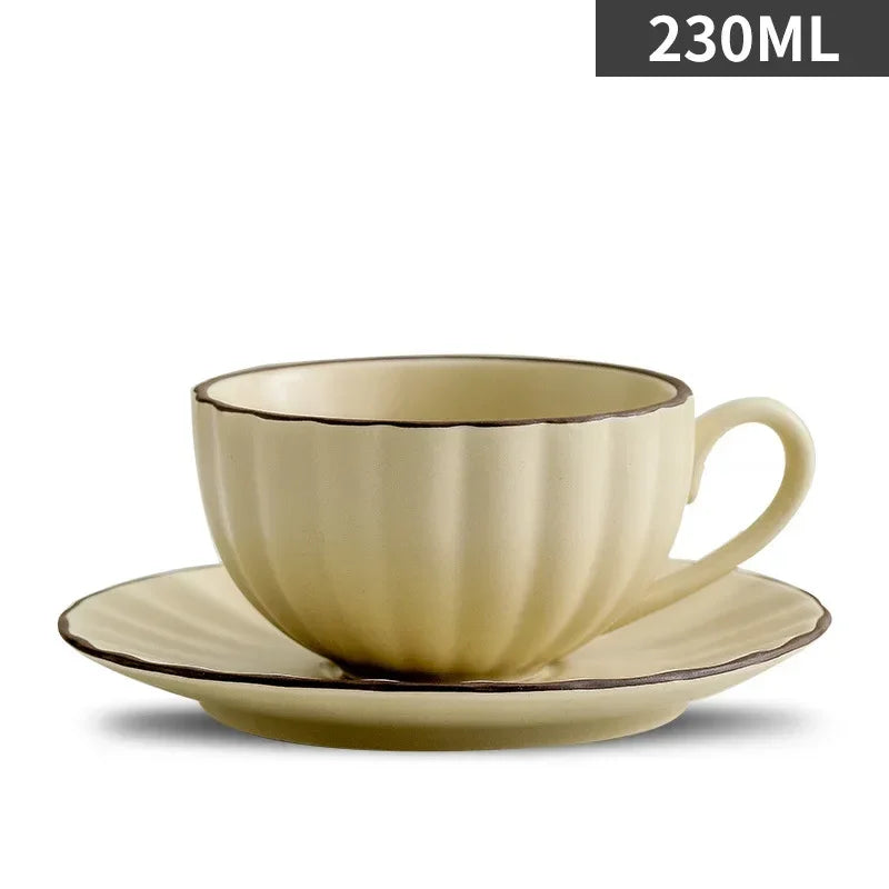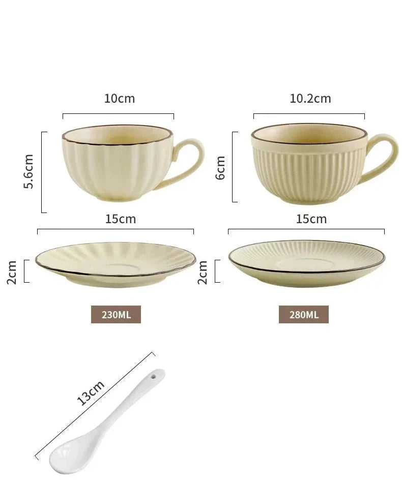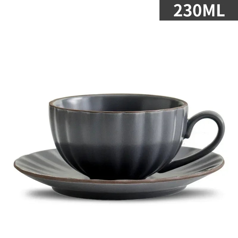 Xícara e Pires Canelado em Cerâmica, com design sofisticado e textura canelada, alia beleza e funcionalidade, proporcionando uma experiência única ao servir suas bebidas favoritas.