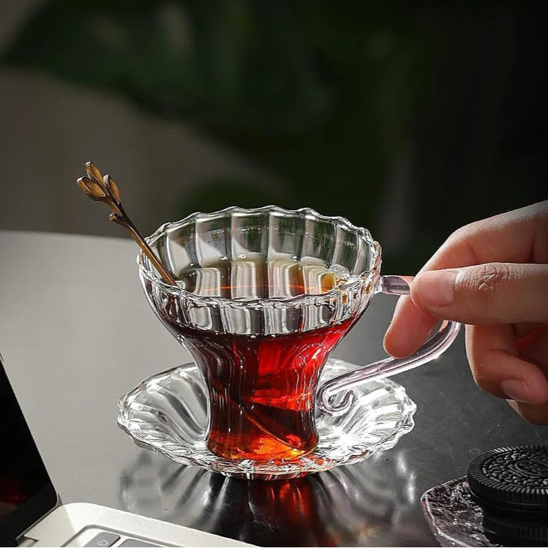 Xícara e Pires de Vidro, confeccionados em vidro de alta qualidade, eles são ideais para apreciar o aroma e a temperatura perfeita dos seus cafés, chás e cappuccinos.