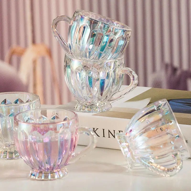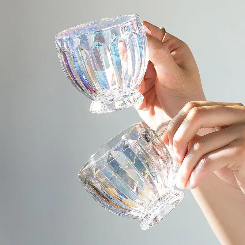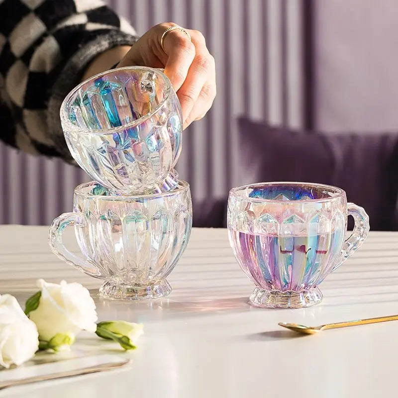 Xícara Glamour com design brilhoso de vidro, essa xícara vai encantar seus sentidos e adicionar um toque de alto astral e sofisticação à sua rotina.