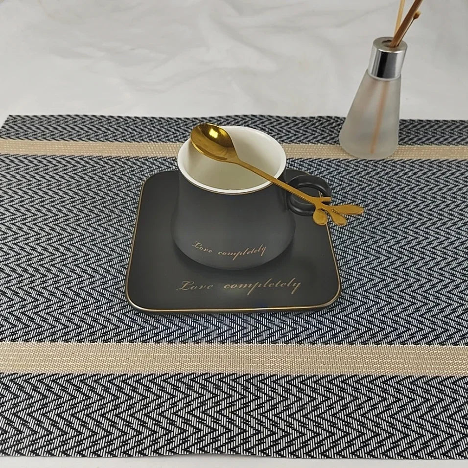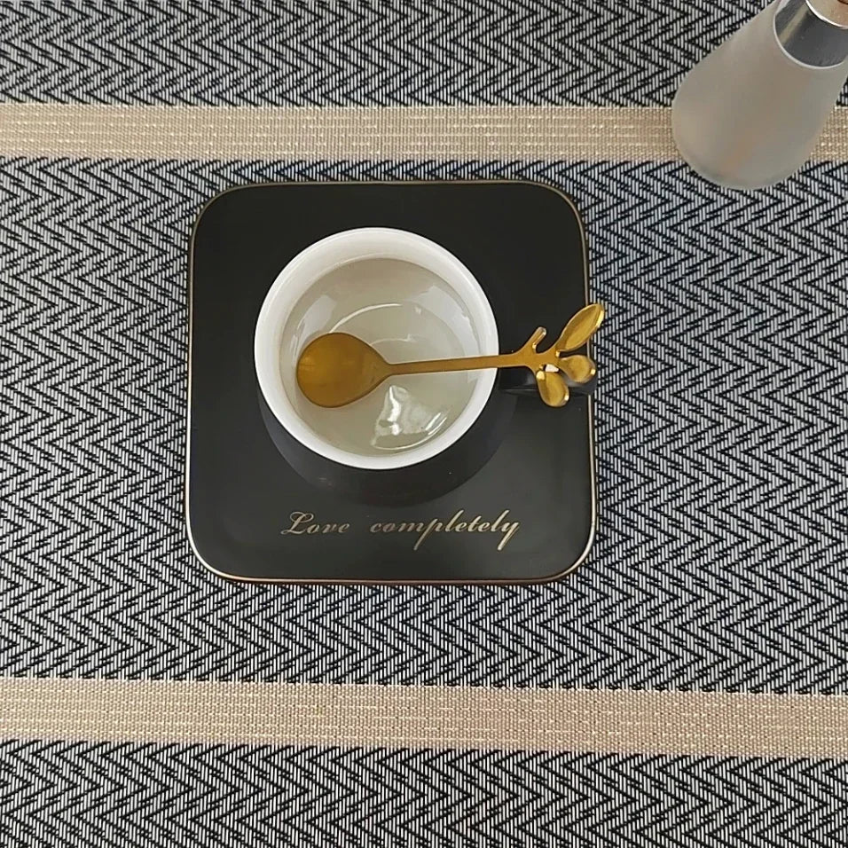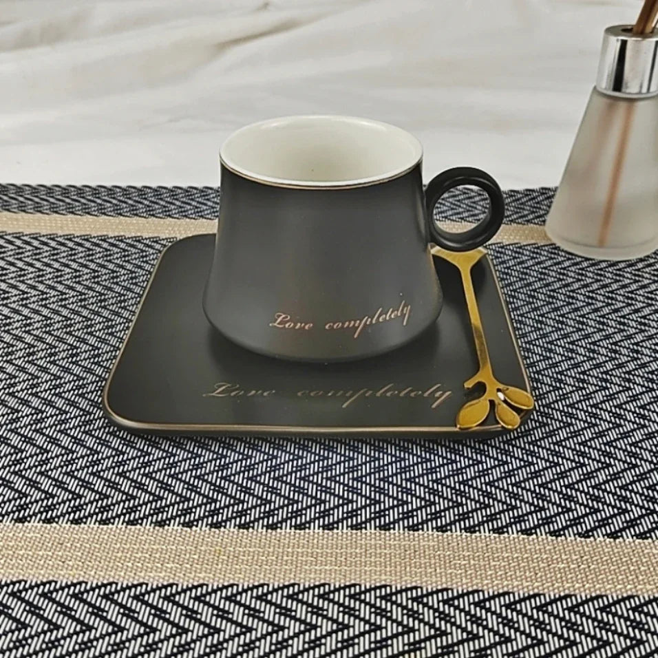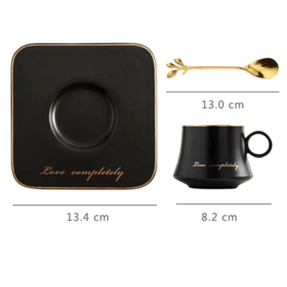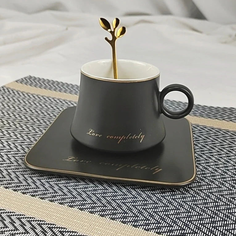 Xícara com Pires Preto Fosco e Colher Dourada - 200ml